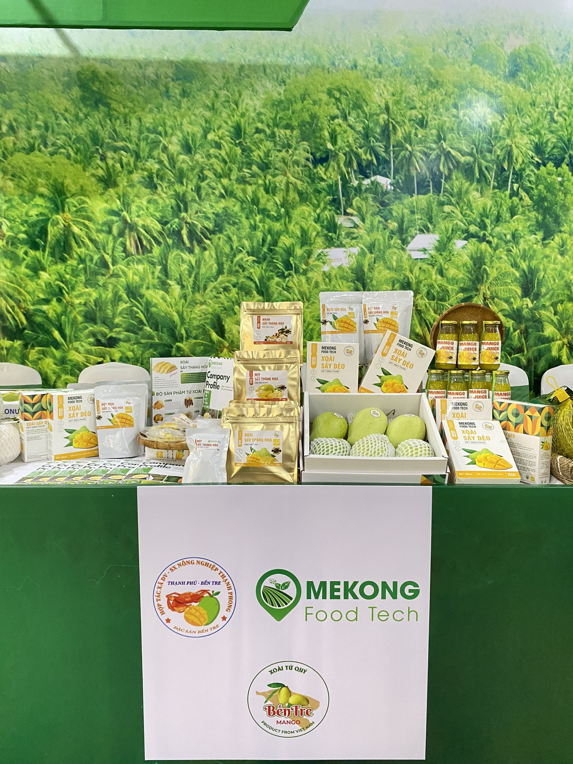 Tại đây, MekongFoodTech đã mang đến các sản phẩm có xuất xứ từ những loại trái cây nổi bật có chỉ dẫn địa lý của khu vực đồng bằng sông Cửu Long nói chung và của tỉnh Bến Tre nói riêng. Các sản phẩm nổi bật và có nhiều giá trị không chỉ về dinh dưỡng mà còn mang ý nghĩa thúc đẩy quá trình canh tác, sản xuất nông nghiệp bền vững tại địa phương.